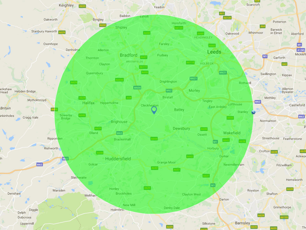 FREE DELIVERY within 15 miles of our base in Bradford, although we can deliver further afield for just a small delivery charge.